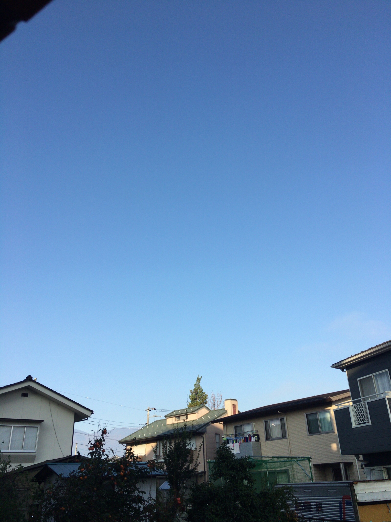 甲府市の朝、青空が広がっています。