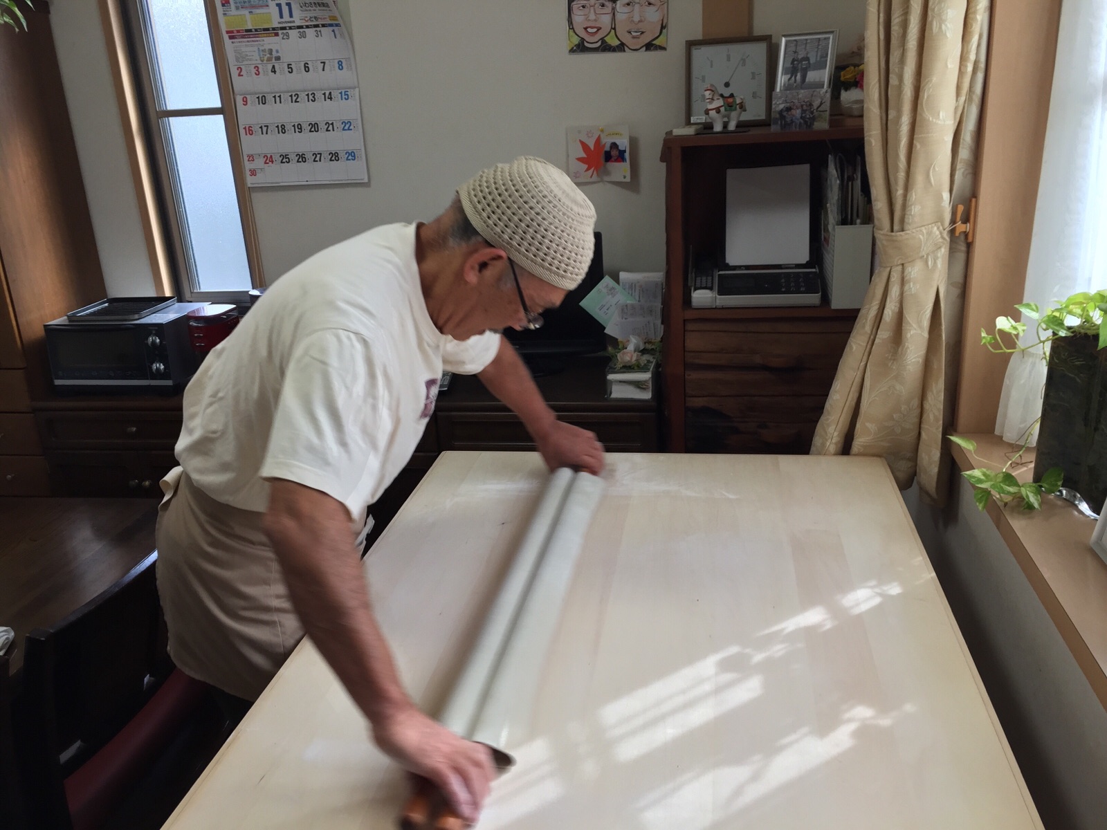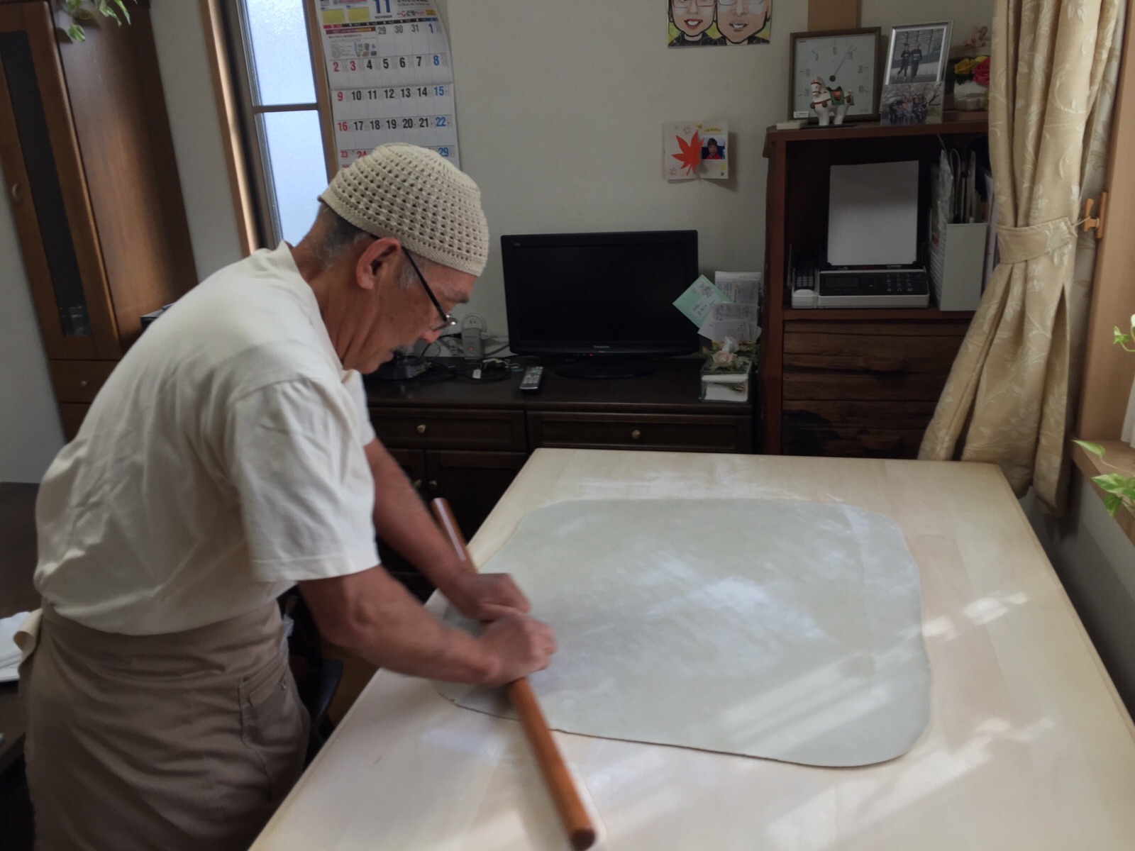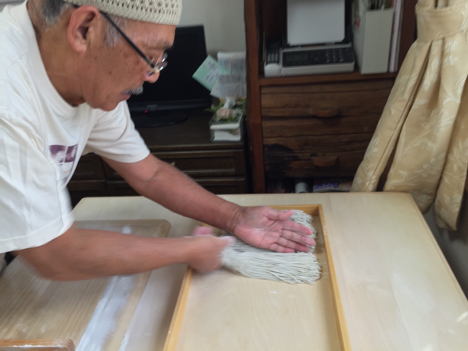 そば粉が8、小麦粉2の本格的なそばを打っています。 お義父さんすごい! masukawa