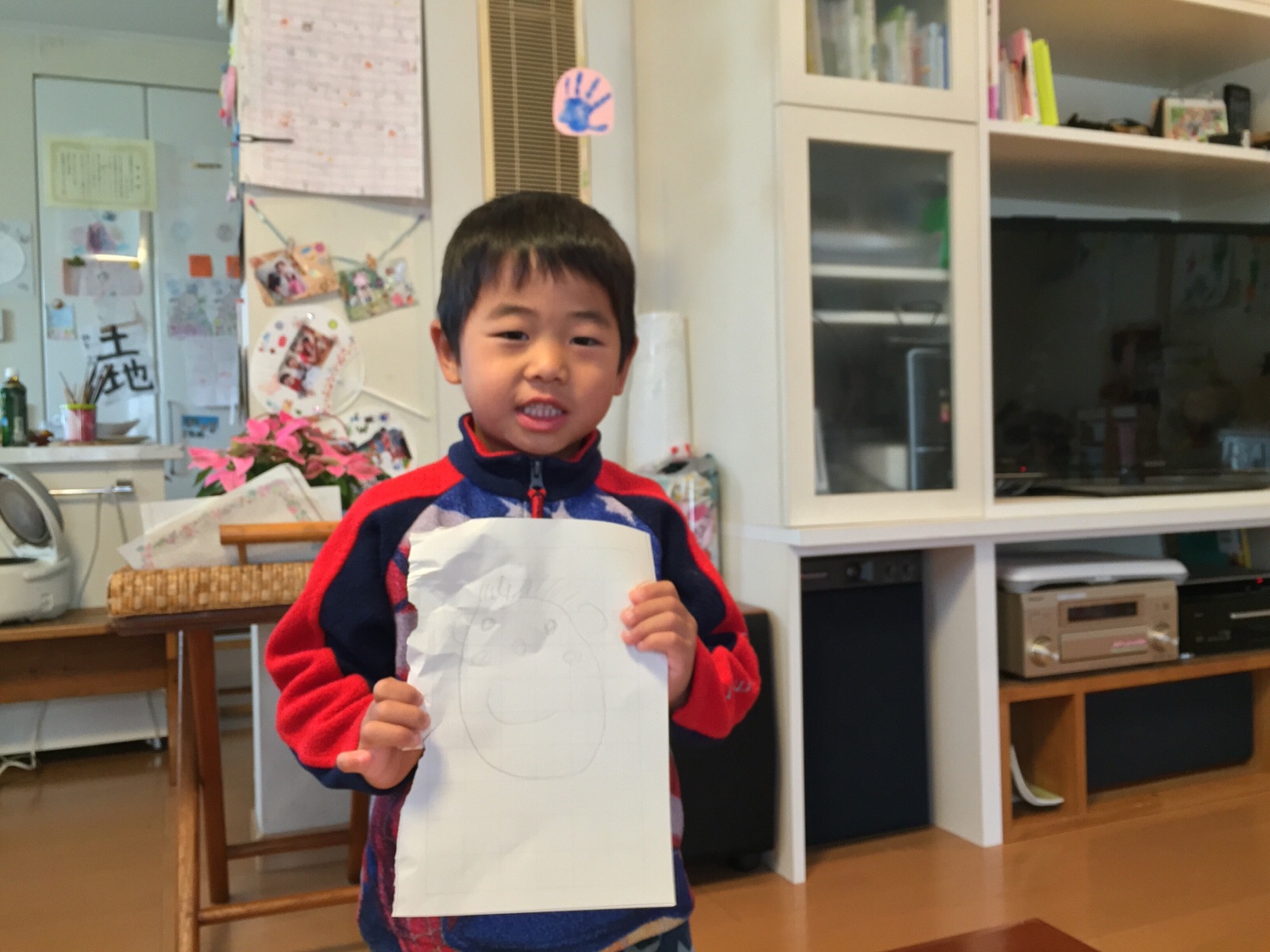 うみくんがひでおじさんの似顔絵を書いてくれました。 そっくり。 masukawa