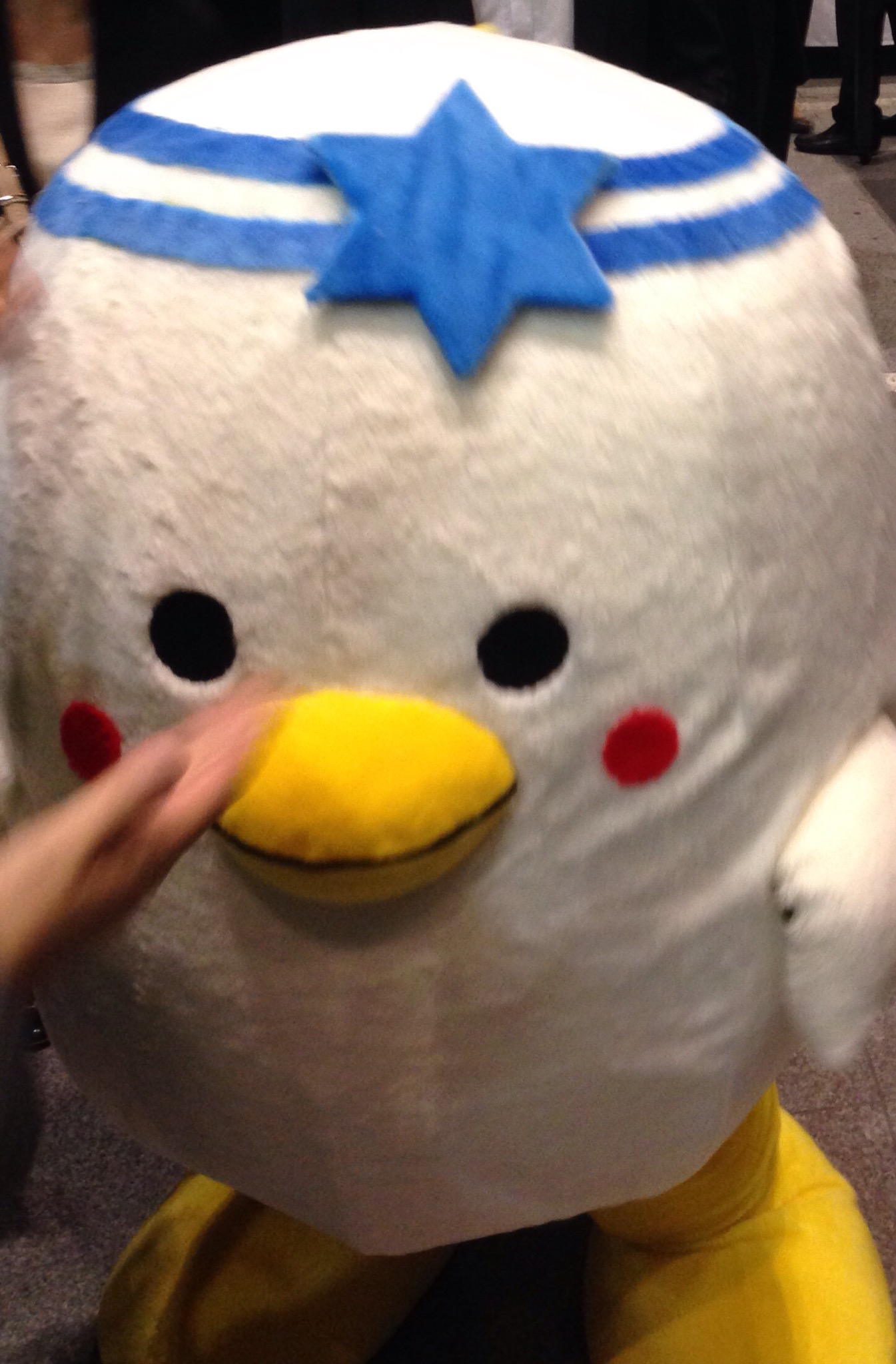 大使館公式ゆるキャラのシャロウムちゃん(♀) ゆるゆるですが、しゃべれません。 羽根のひらひらの動きが、とってもキュートです。