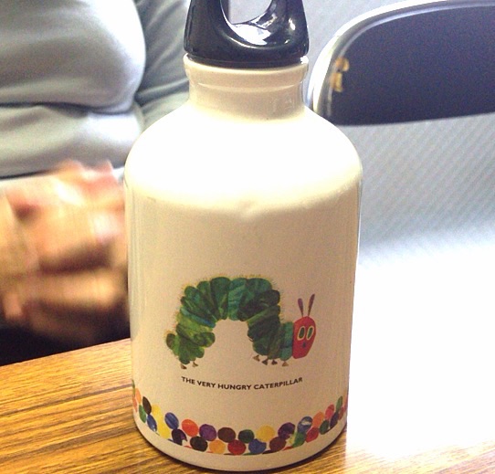 お孫ちゃんの 使ってた水筒で 世界的有名な絵本の イラストだそうです。 oji