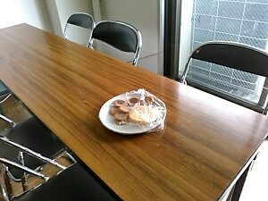 ミッション事務局は10amスタートです。昨晩遅くまで仕事をしていた、スタッフが、お菓子の残りを置いといてくれたようです。