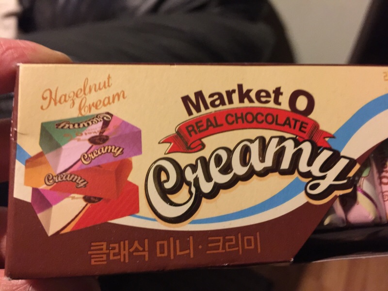 娘が、韓国のお土産のチョコを分けてくれました。韓国の食べ物は、何を食べてもおいしい。 デンバー教会 上舘