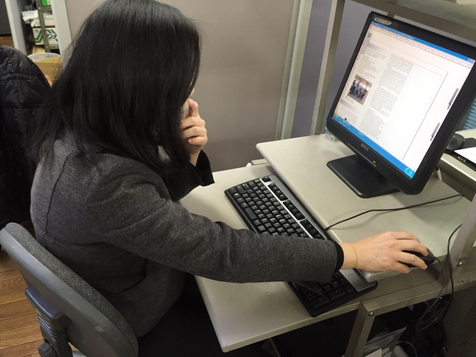 感謝と賛美とリバイバルキャンプの話し合い中、ゆかりさんはPCを組み立てるためにがんばっています。 ミッションNaomi