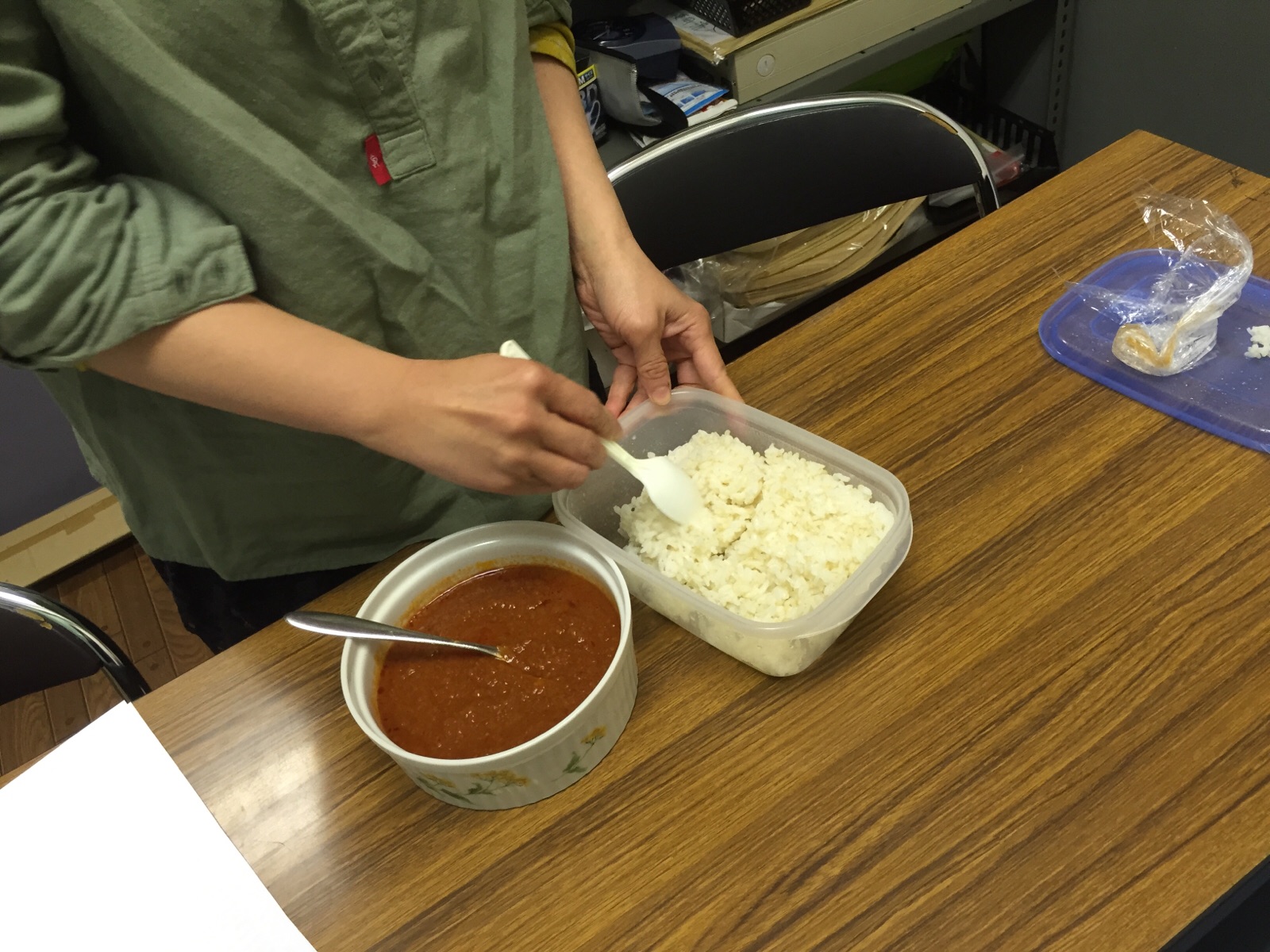 その頃、こちら真ん中にあったもの。まさかのパスタではなく、ご飯でした。うわ〜私は食べられない。 ミッションNaomi
