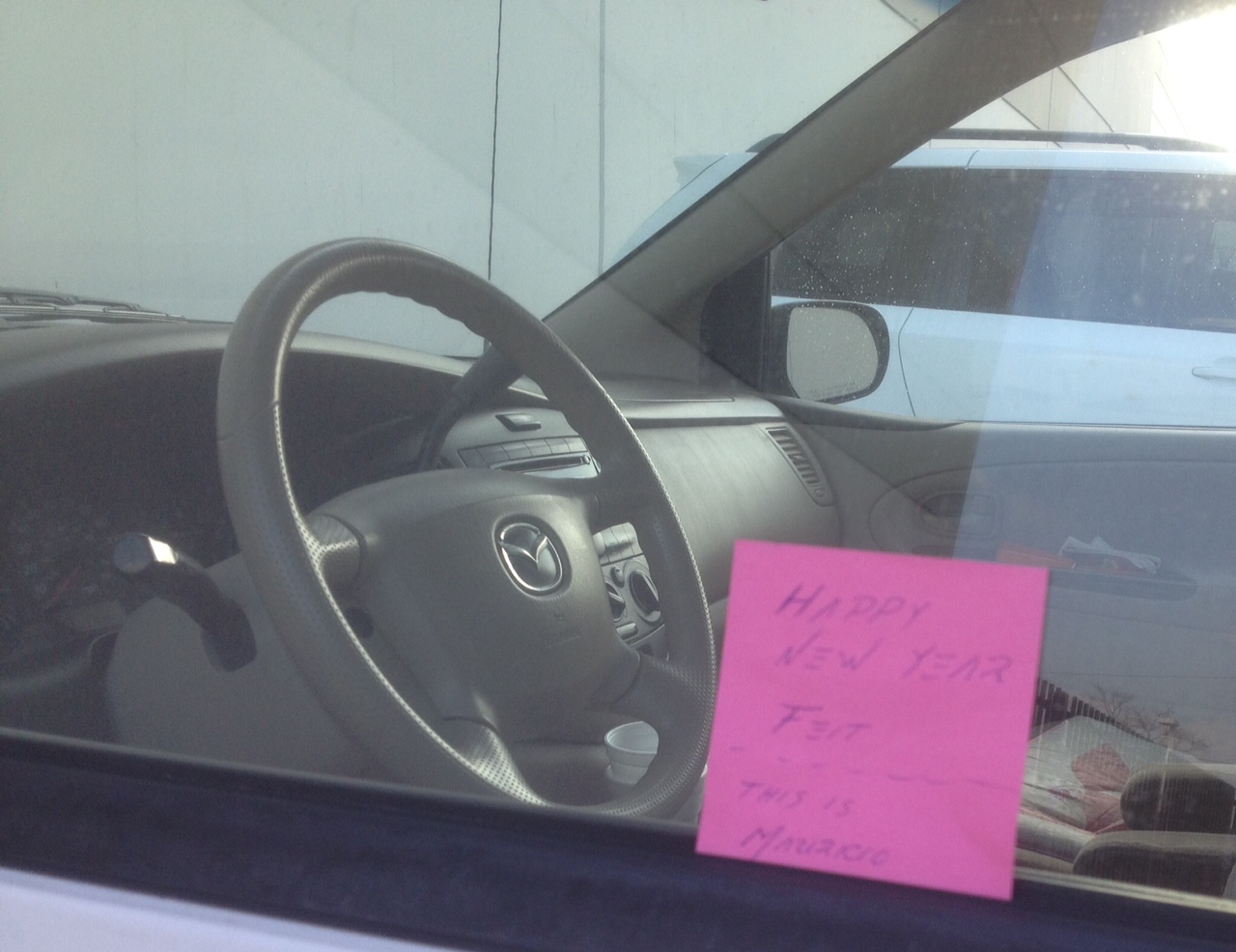 メキシコ人のキッチンで働いている方からのメモが車に挟んでありました。