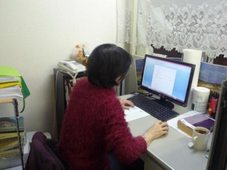 あまがい(天谷)奥さんは、今教会事務所で、白馬スネルゴイキャンプ(2/18~2/20)の 申し込み入力中。