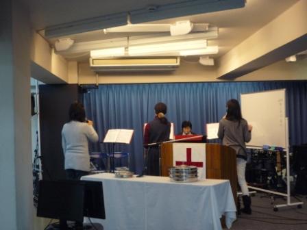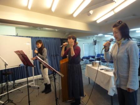 アジア部門の、園子さんは、 賛美の練習中です。(一番奥)