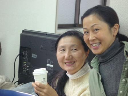 月曜第一礼拝が終わって、お昼休み中の 北米部門のおじろさん(右)。 左は、おのじまさん。