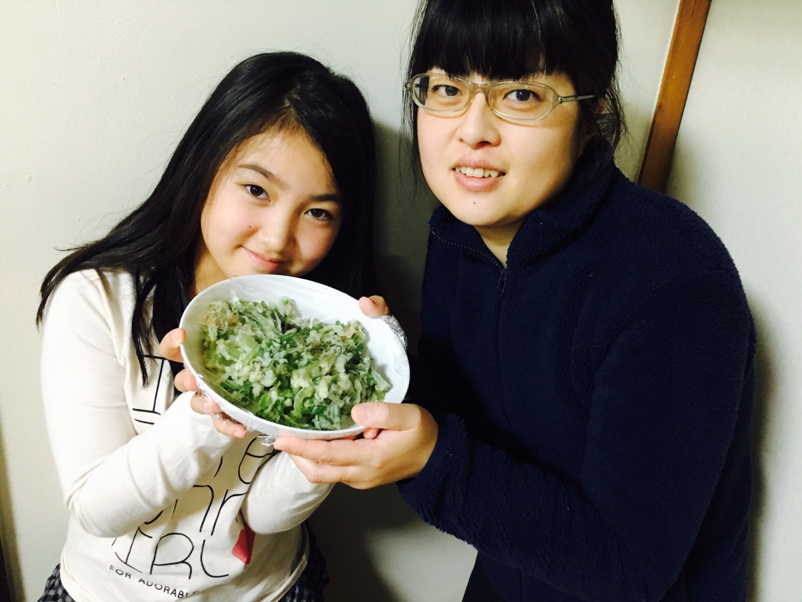 そんなつもりはなかったんですけど、おかず1品増えました!春菊の天ぷら(≧∇≦)