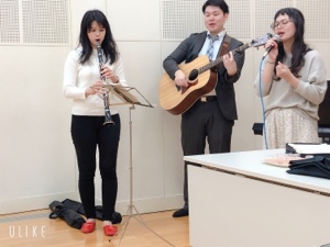 今日はえりかちゃんのクラリネットが入りともに賛美します♪