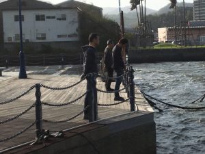 激しい風と波の時津港で祈る中 2019/10月/13 [日] 16:31