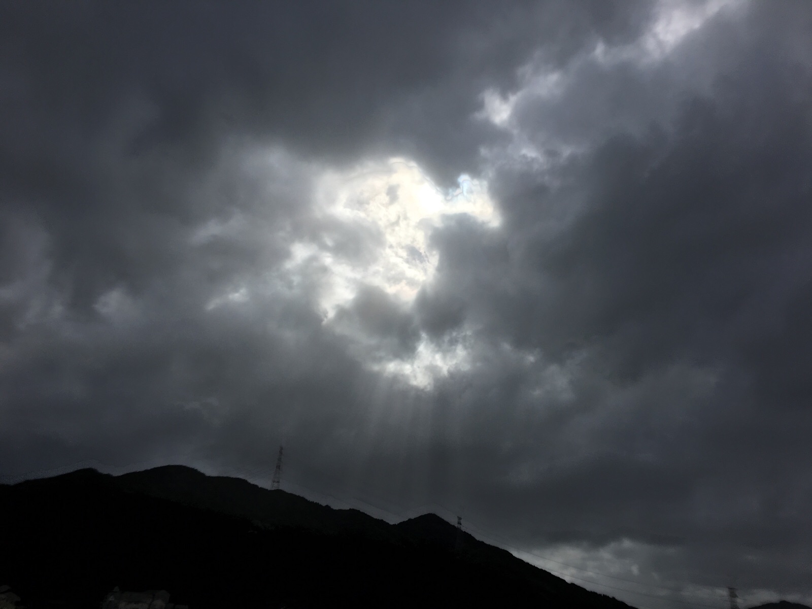 厚い黒雲からも、次々と天の光が射し込んでいます!エステルY