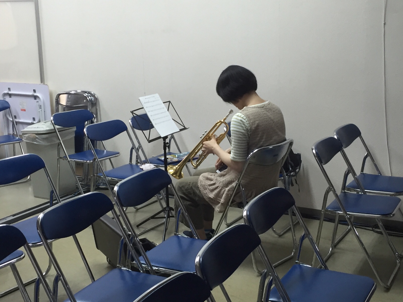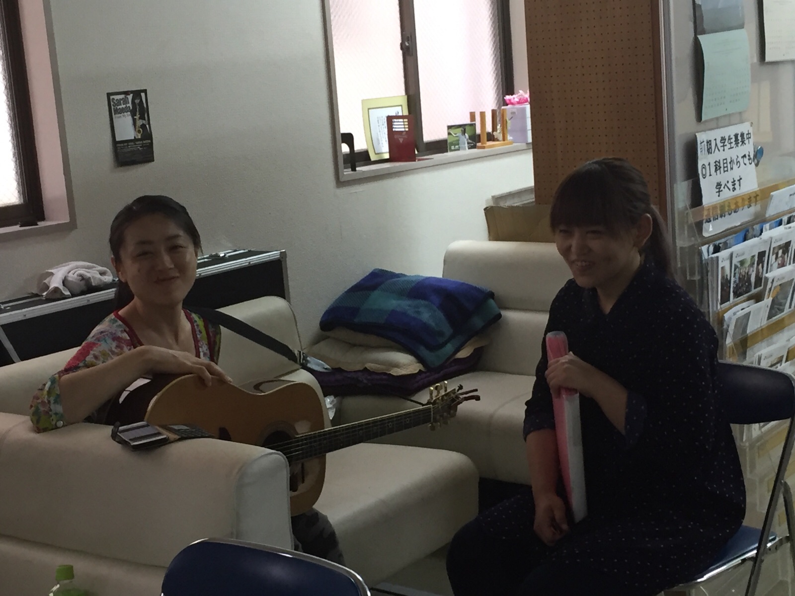 会堂では、山中さんと由美ちゃんがギターの、栗ちゃんがトランペットの練習中。 私も何か楽器やりたいなぁ。Joy.m