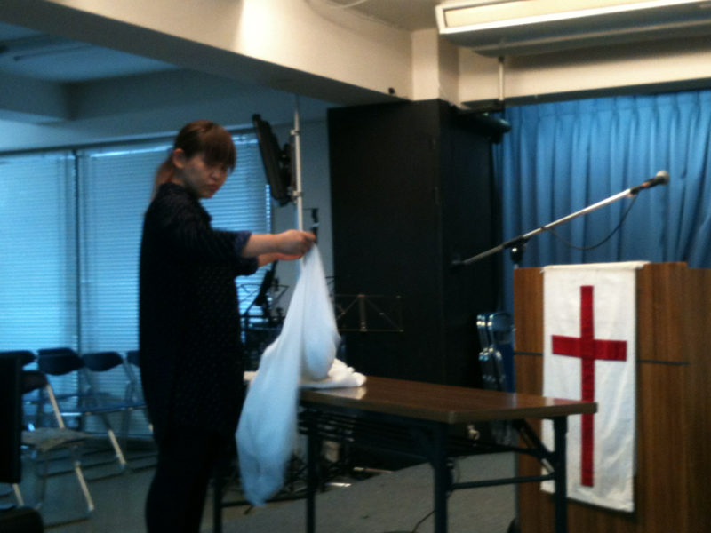 お仕事がお休みの栗ちゃん、朝練に来て、礼拝にも出席します。 kato