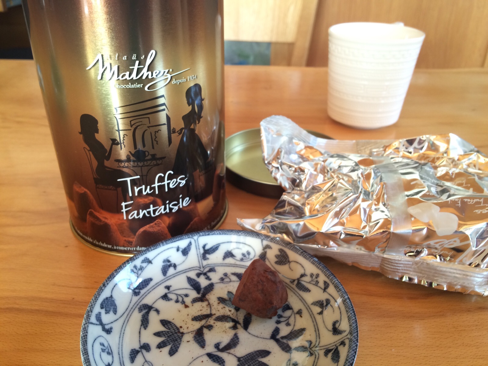 チョコレートの缶に、2袋チョコが入っていて、1袋、もらいました。 皆におみやげが出来た〜。 ミカエル