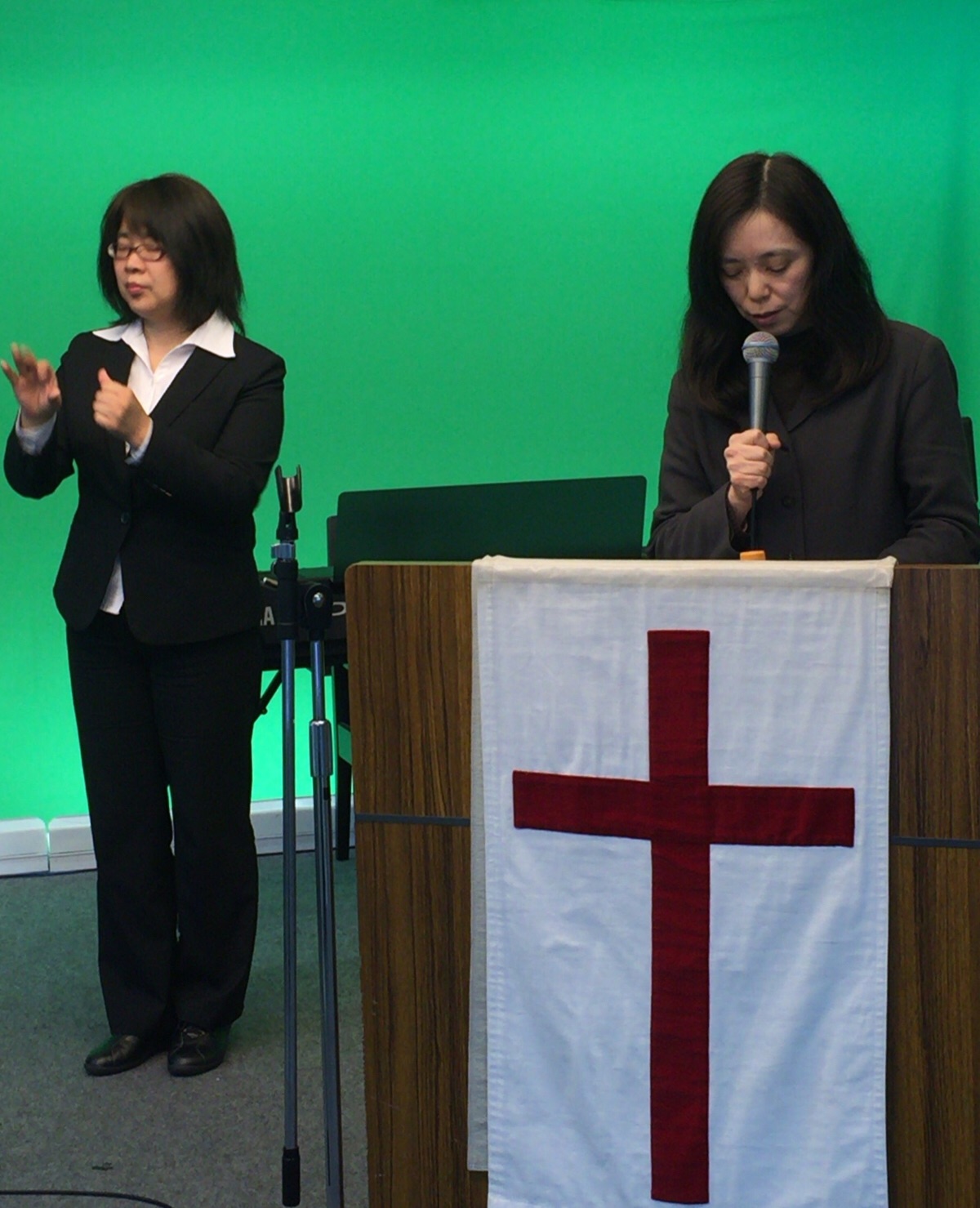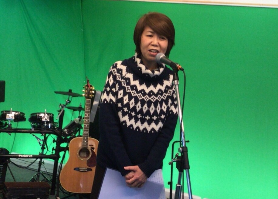 教会事務所で和香子さんが寄り道を録音中!