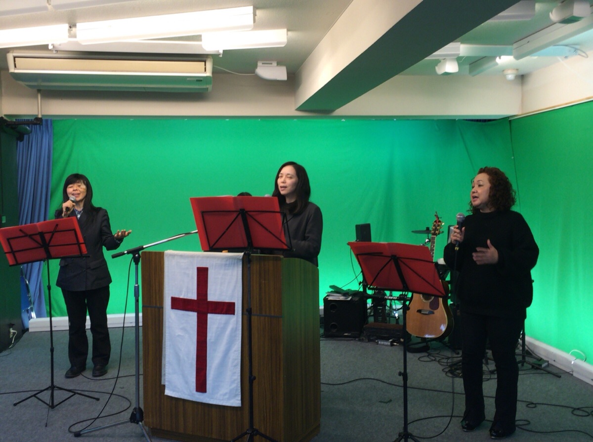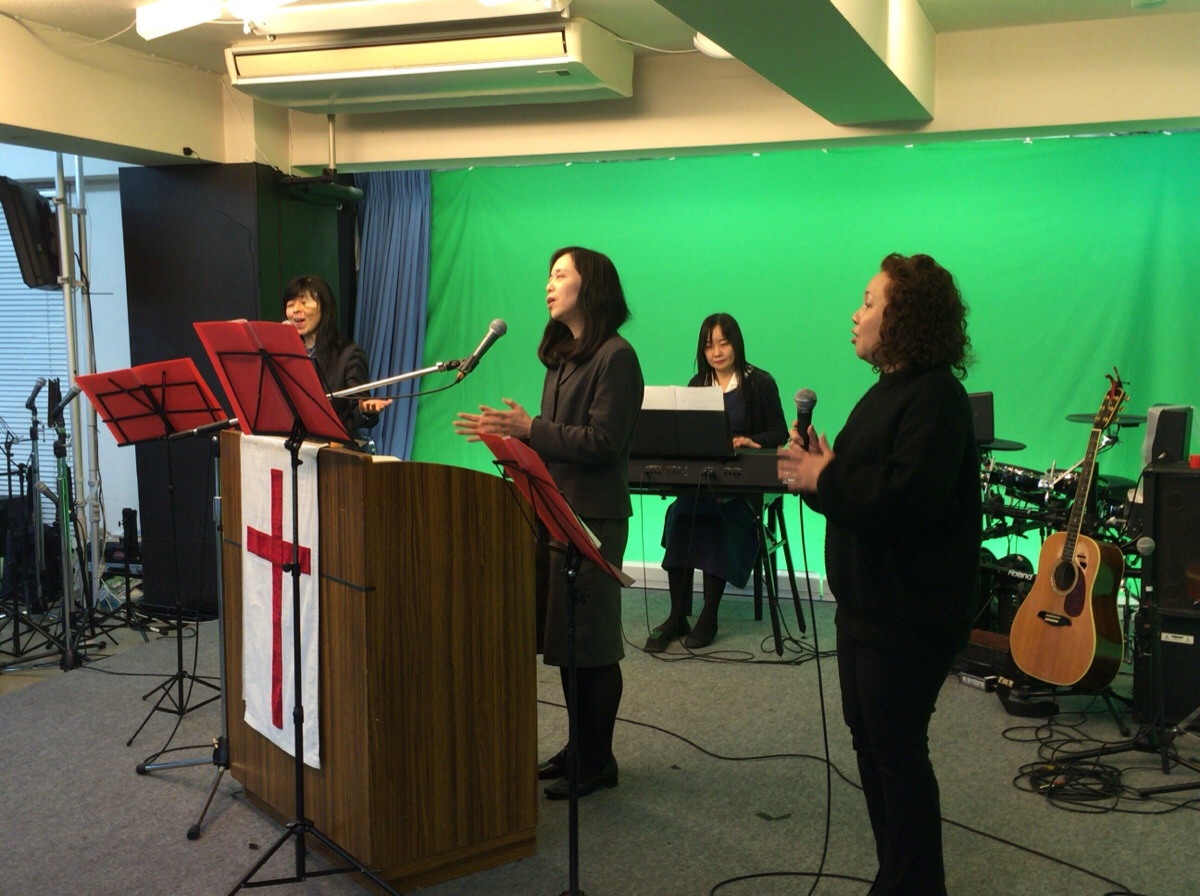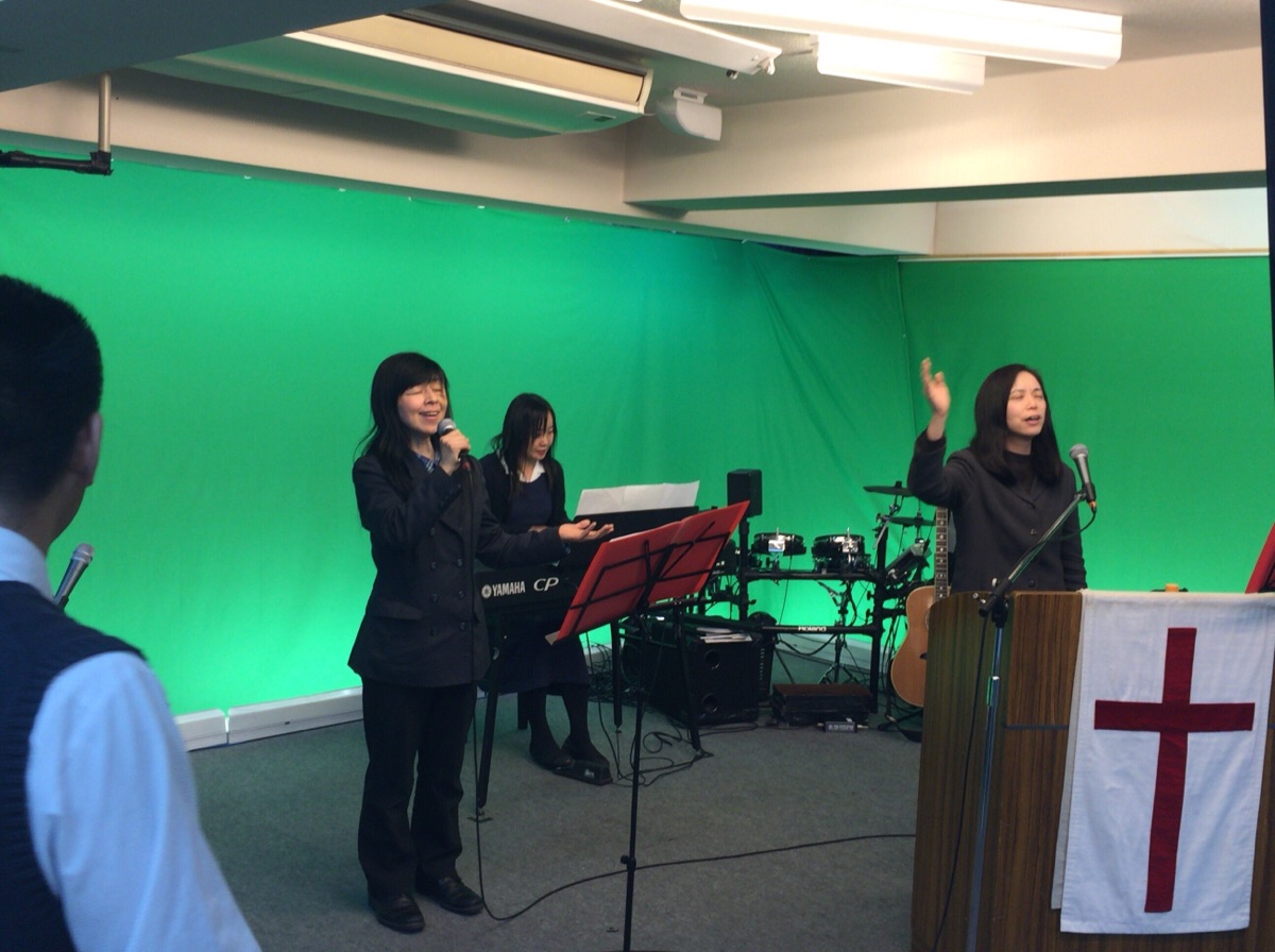 牧師賛美が始まりました。小林さんが導きます。 オギハラ