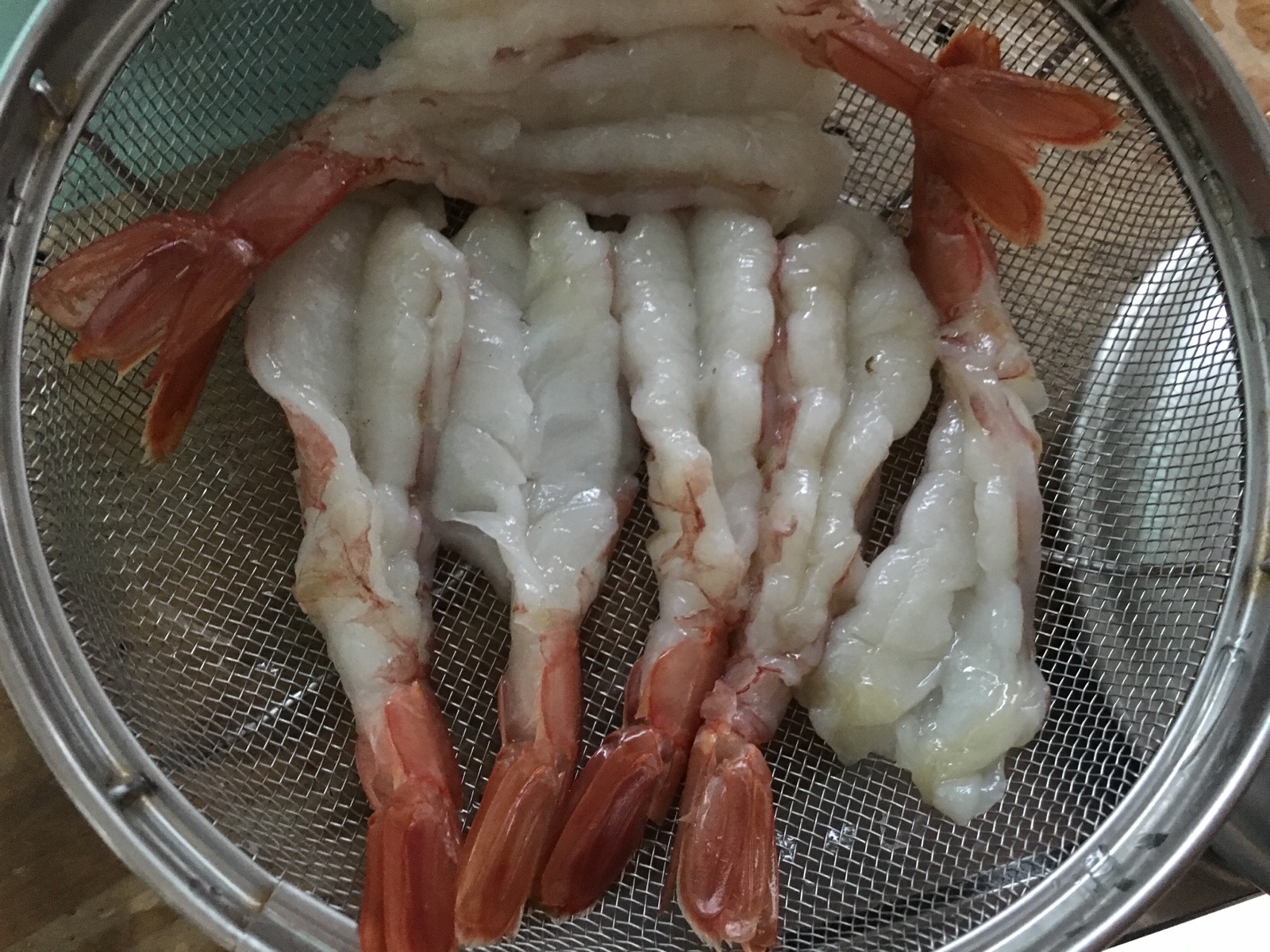 今日はエビの天ぷらを母が作り、私はお手伝いします。 Kayano