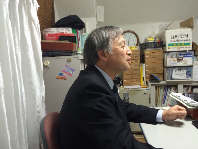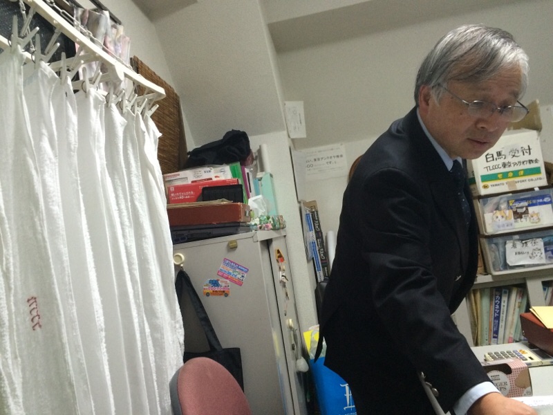 お話し中の今村さん、加藤さん! 教会事務所にて…。