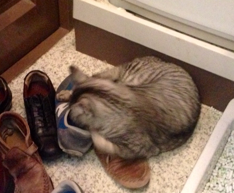 なぜか…私の汚れたスニーカーに激しく頭を突っ込む姉の猫、ロン(笑)かわいいです。Noah輝美