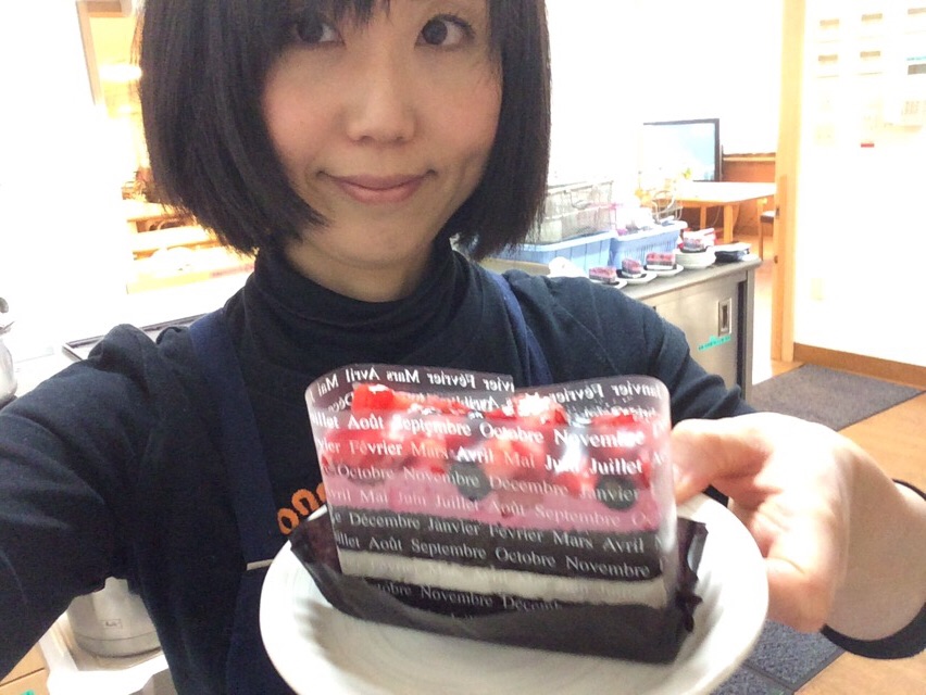 今日の職場のおやつは、3種類のケーキ。で、1種類、豪華。正月だからか? ミカエル