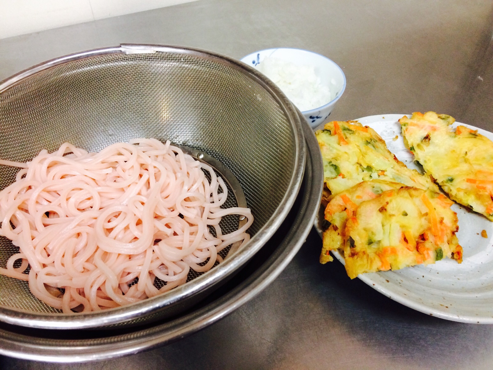 今日の職場のお昼ご飯は、うどんとかき揚げ。 ミカエル