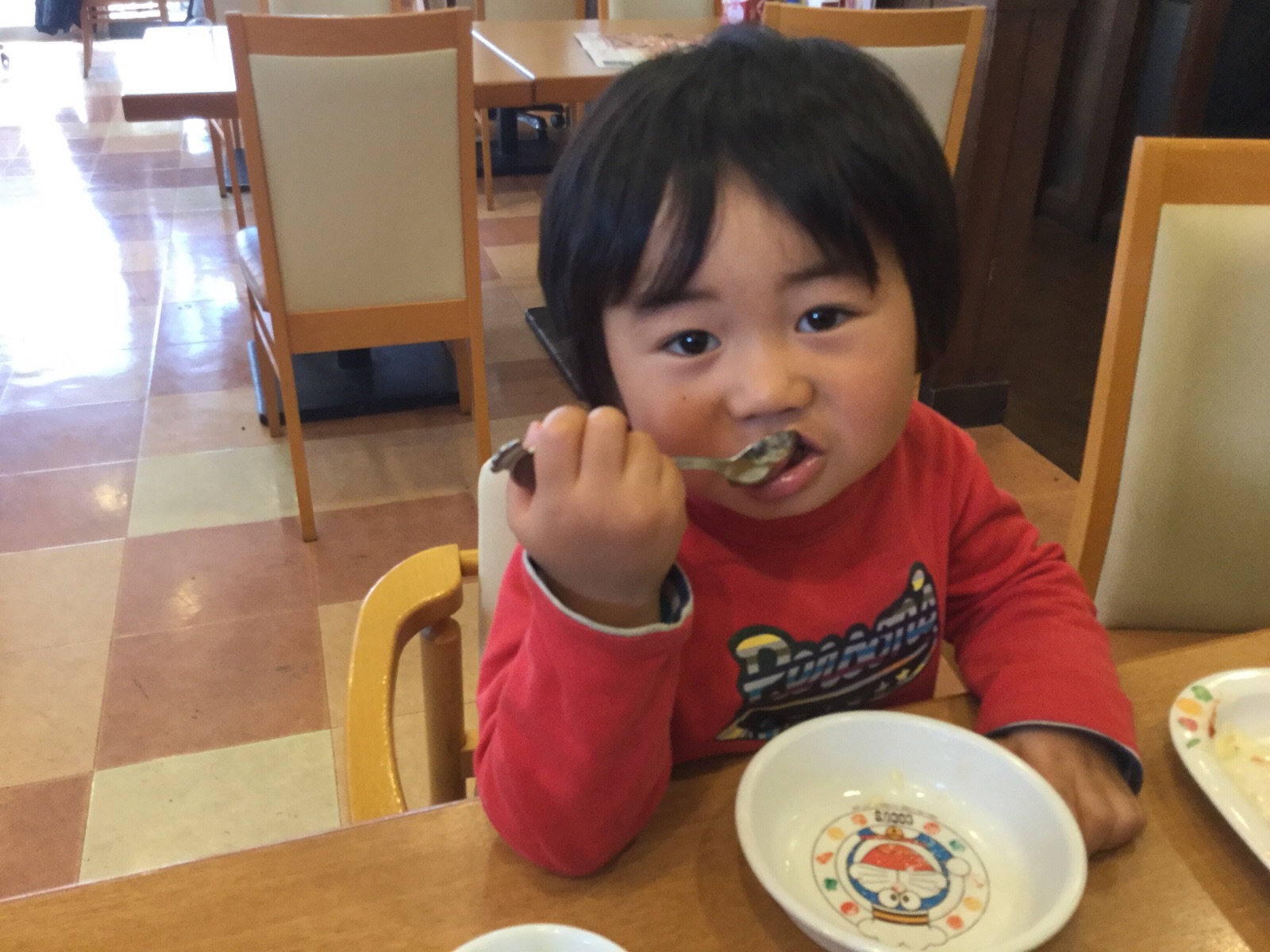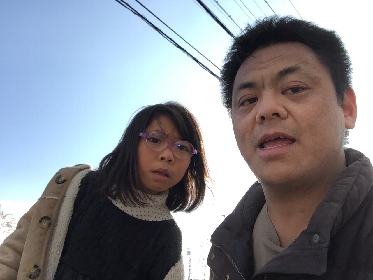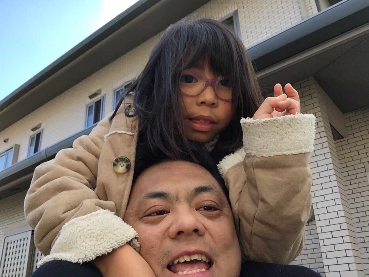 そらちゃんを肩車してバスチケットを買いに行きます。重たい。masukawa