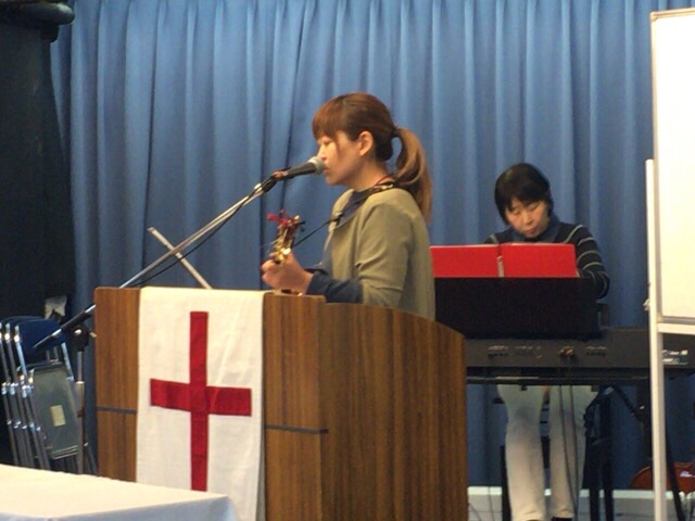 今日はOHPが付かないのですが… 賛美している稲村さん! Kayano