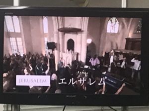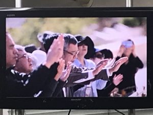 エルサレムの平和を祈る集いの映像を見ています。