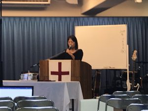水曜礼拝が行われています! カンボジアチームの証しの時です。 土屋さんが証しされてます。