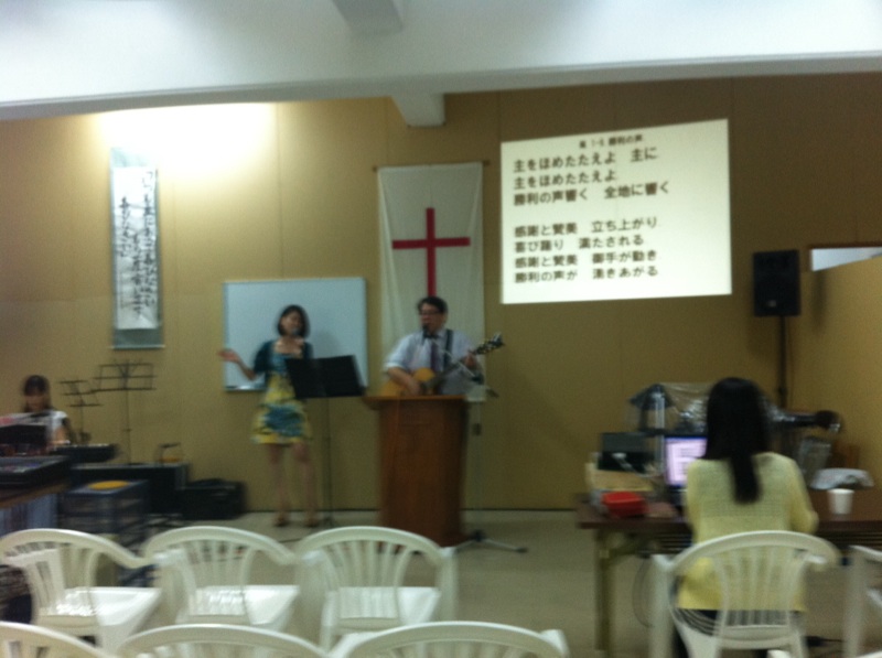 ヨハネ山口さんのリードで賛美しています。 沖縄