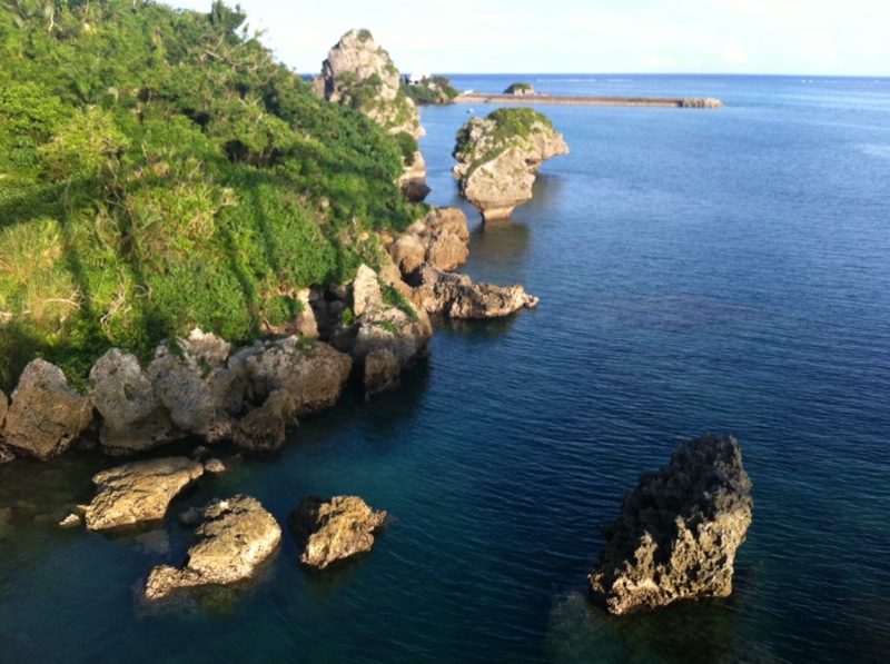 沖縄らしい日差しと海です!5時過ぎていますが、日差しはきついです! 沖縄