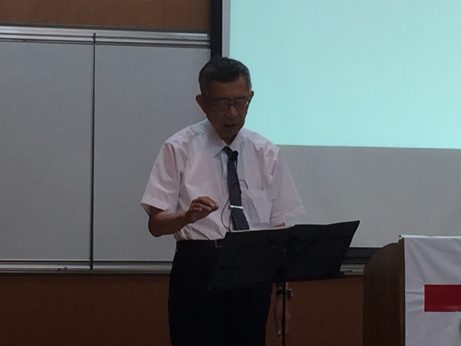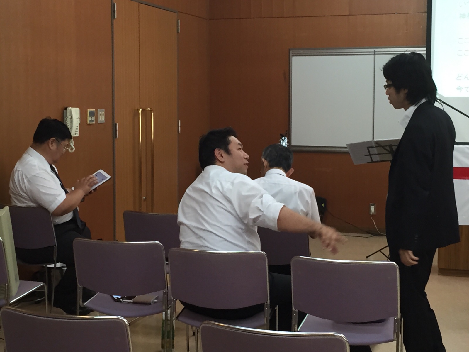 チームのショートムービーを見ています。 沖縄聖会