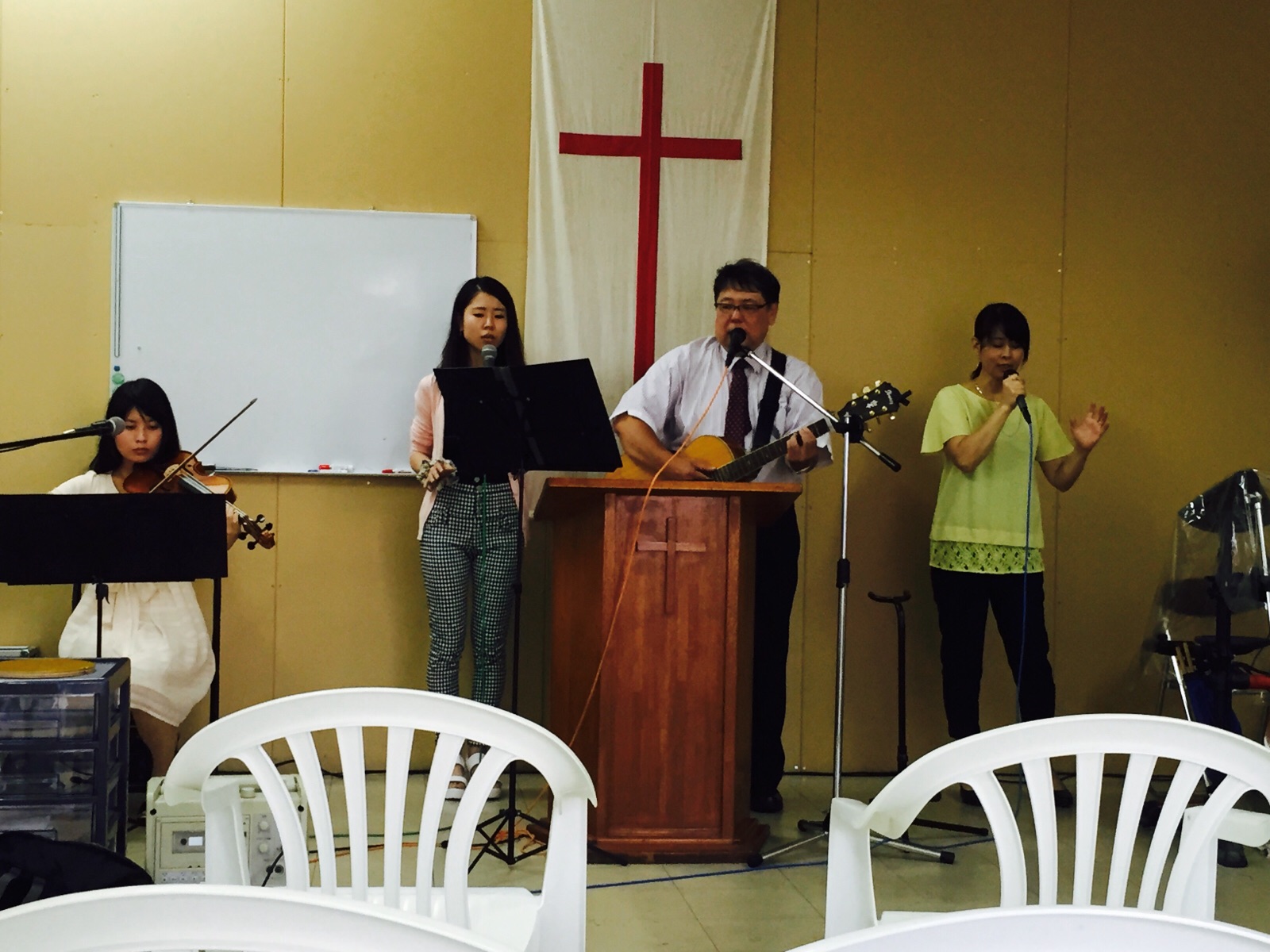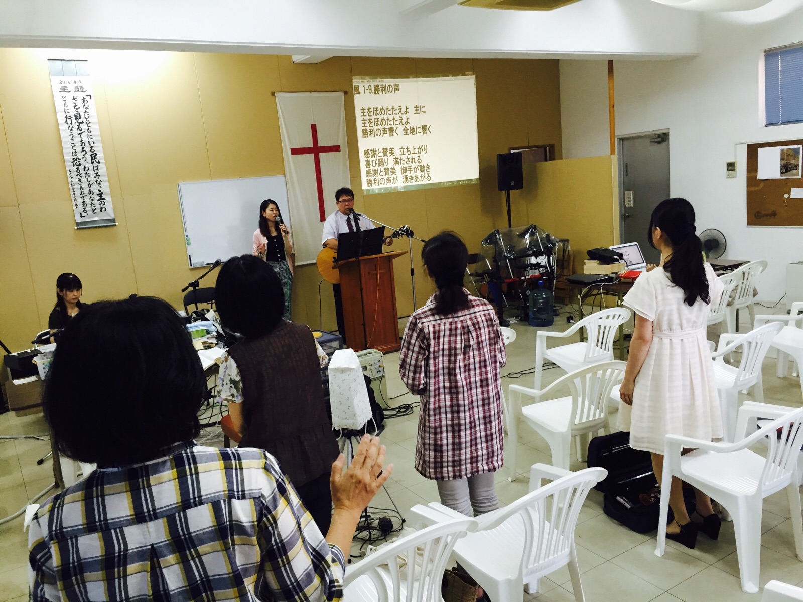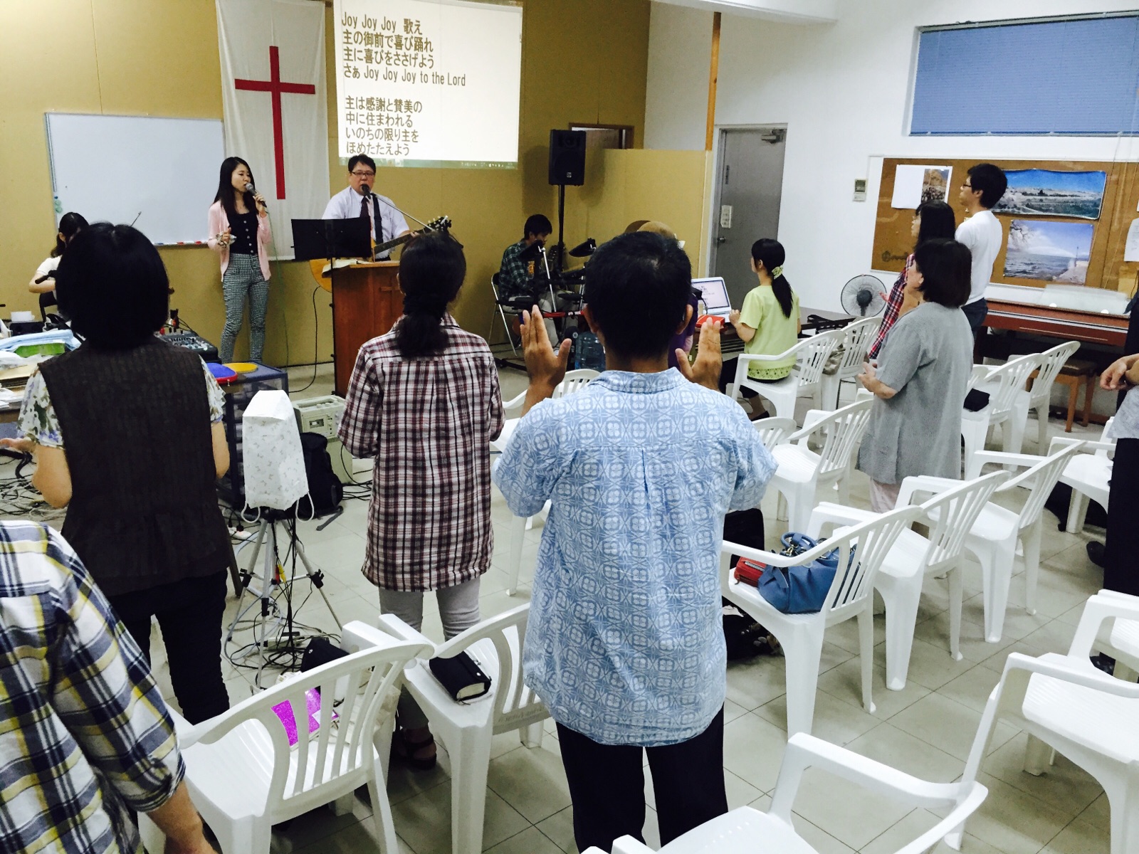 賛美を持って聖会が始まりました。 沖縄聖会