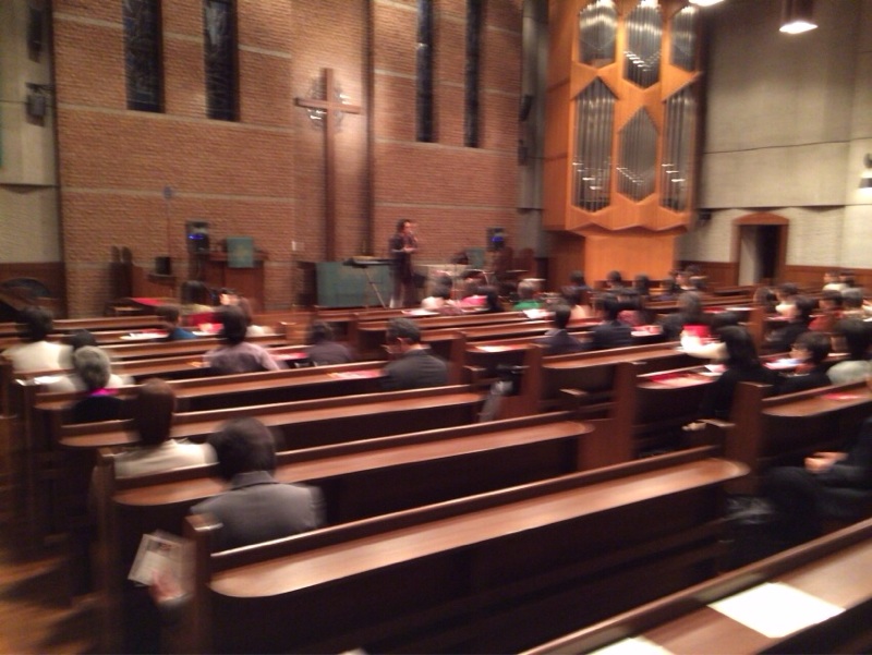 みなさんの中で自分は若いと思う人は立って賛美しましょうとリードされています。