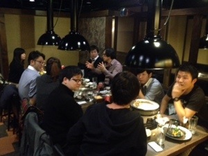チェさんと、佐藤さんのお友達と池田さん! 食事会が終わって、お店の前でパチリ!