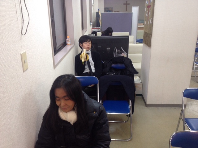 松本宣教師の後ろでバナナを食べるはじめくん。 何ともいい絵です。