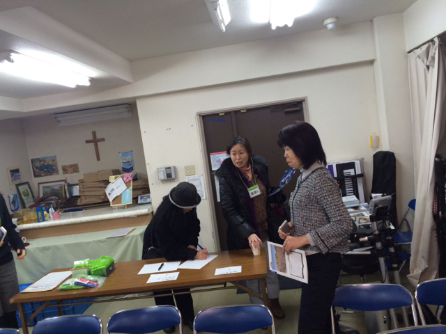 荻原さん到着。カメラを向けると、しつこいなー!嫌だと言ってるじゃないかー!と写真拒否をしていました。 荻原さんは神学校の奉仕です。