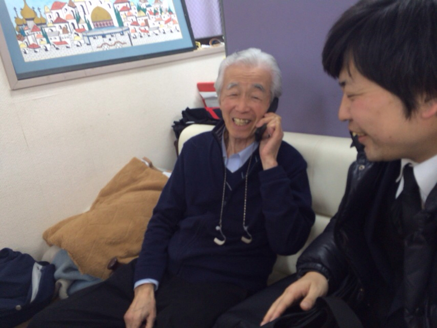 お電話中の新井先生。 電話の先は? 山田牧師だそうです。