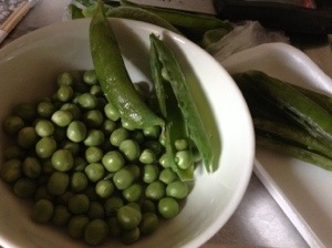グリーンピースが安かったので、 今晩は、グリーンピースごはん。 さやからえんどう豆を出してみました。 ふぃべ