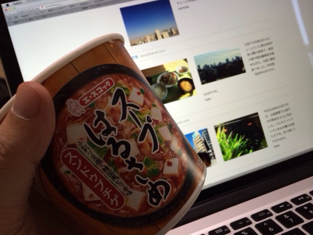 今日はお休みですが、そうもいかないような感じです。 遅めのお昼ははるさめスープ! スンドゥブチゲ味! 辛いのが好きなもので! samuel kasahara