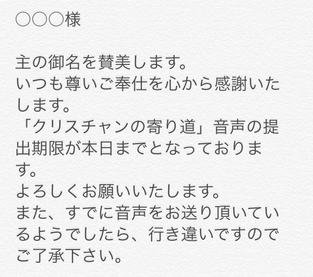 今日もクリスチャンの寄り道、催促メールを送ります。 本日は、O伝道師です。 ブロガーM