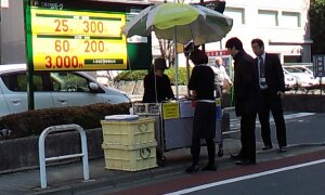 お昼になると、あちこちにお弁当屋さんが出現します。 時間が遅くなると、おまけしてもらえることもあります。