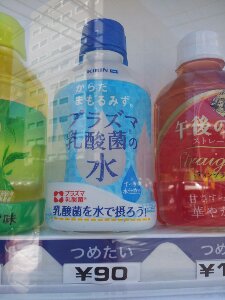 お弁当屋さんの側の販売機で90円のドリンクを発見しました! 健康に良さそうな名前です。