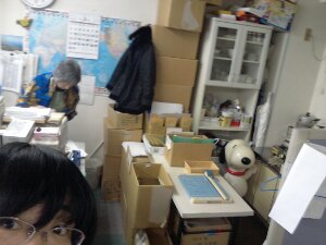火曜日はいつも中川さんと二人だけ。事務局の中は静かです。 あ、スヌーピーもいますよ!