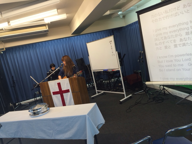 火曜礼拝が始まりました! 賛美から。 滝田由美ちゃんが賛美リードしてます。
