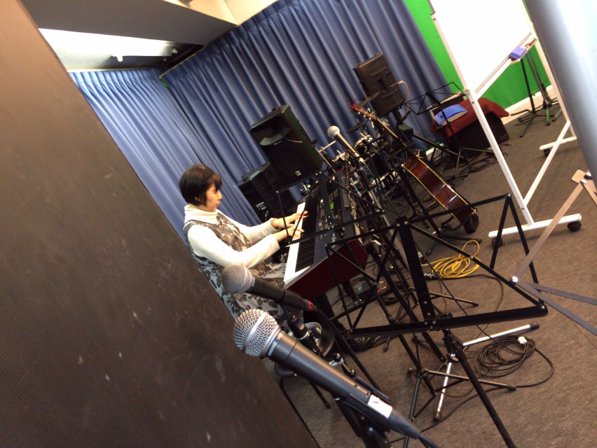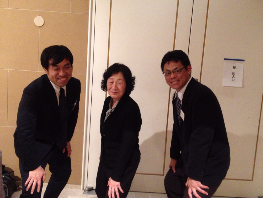 昨日の東京カリスマ聖会から受付担当として、ご奉仕された堀内さん。アッシャーのお二人に囲まれて、ポーズ。