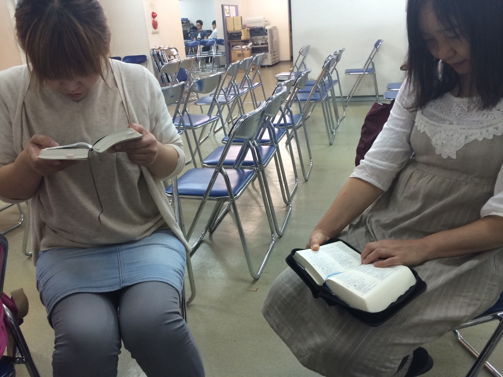聖書を読んでます。 フルートのエステル清水さん。 今度トランペットで入るゆみちゃん。