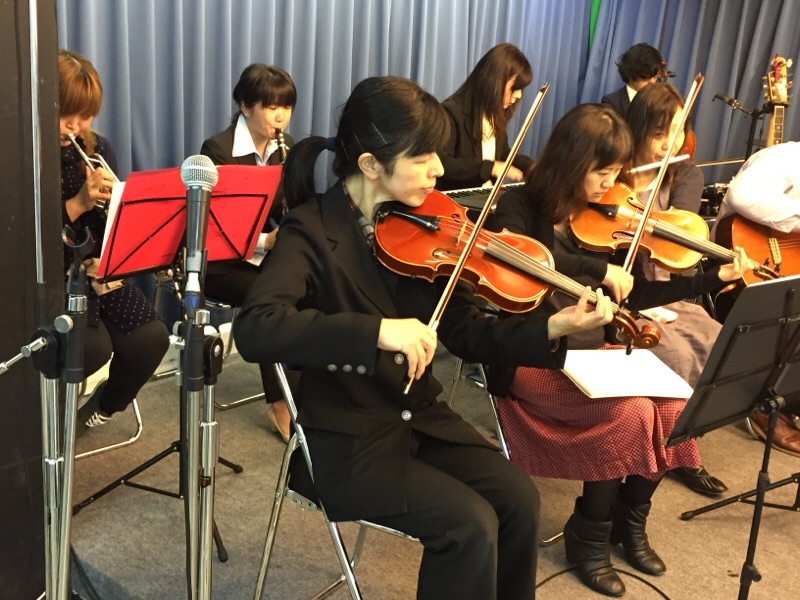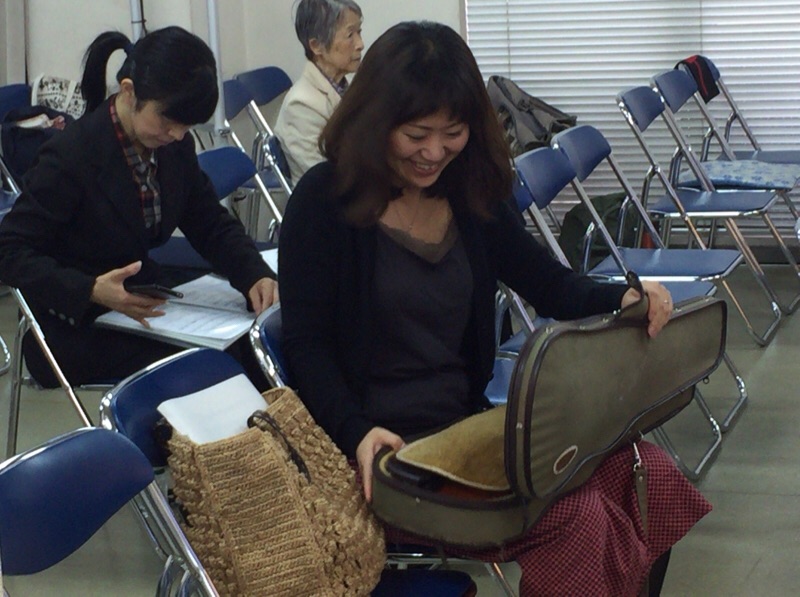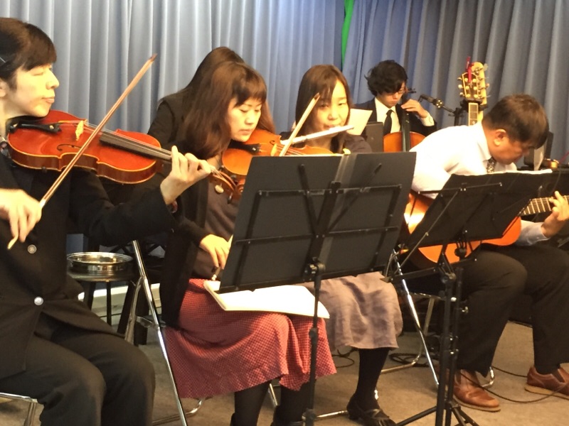 月曜第二礼拝の牧師賛美は、いつもオーケストラ奏楽になります。礼拝前、メンバーが楽器を出していました!